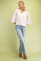 Ruffled Neck Blouse with 3/4 Length Wide Sleeves