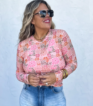 Our new Spring Mesh Tops are HERE!! Super cute for layering! Stretchy mesh print long-sleeve top features a totally sheer design. Perfect worn alone or paired under your favorite cardigan, vest or sweater! Crew neck and thumbhole details sleeves.